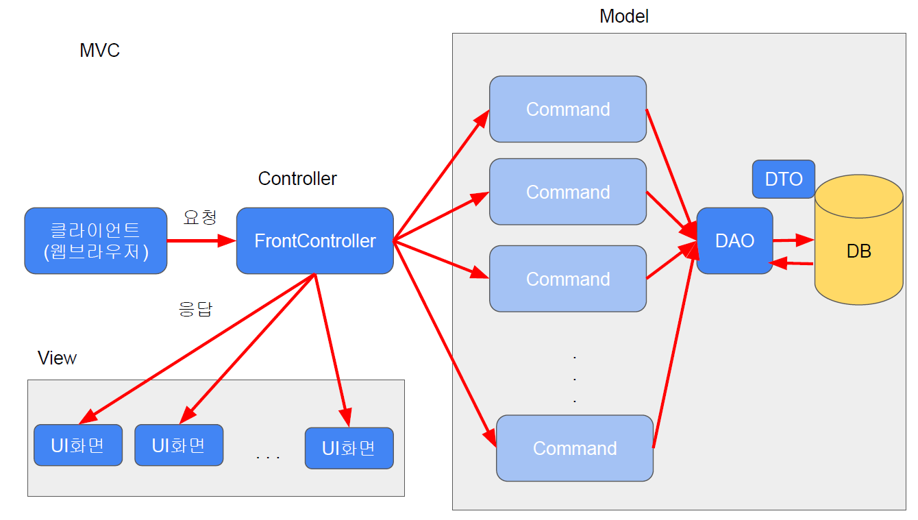 -> FrontController 패턴 + Command 패턴