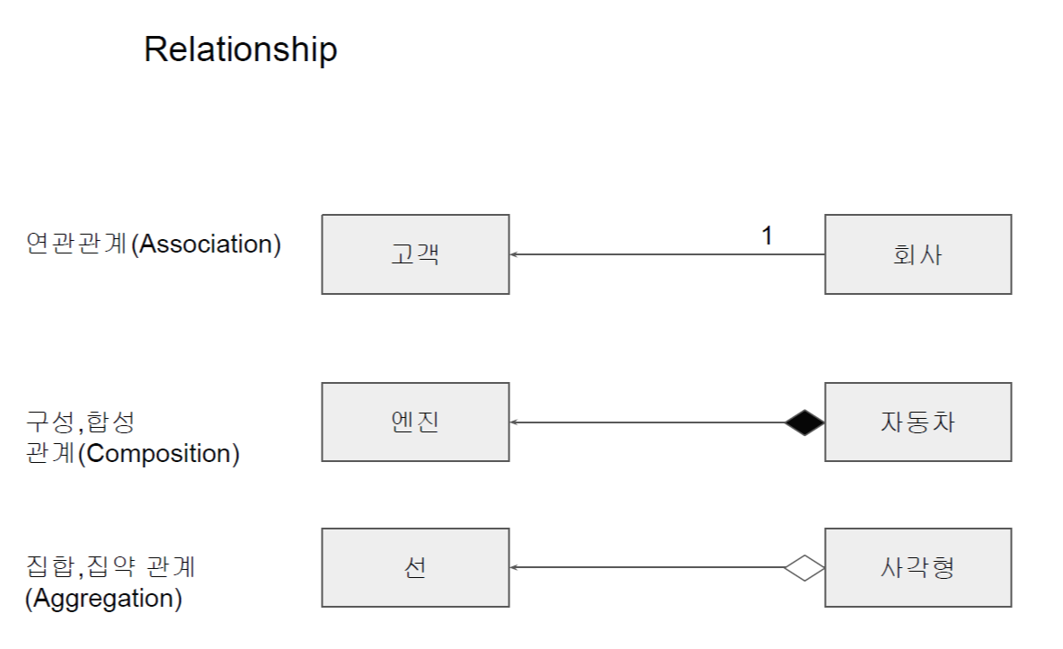 - 클래스 상호 간에 서로 연관되어 있음을 나타냄