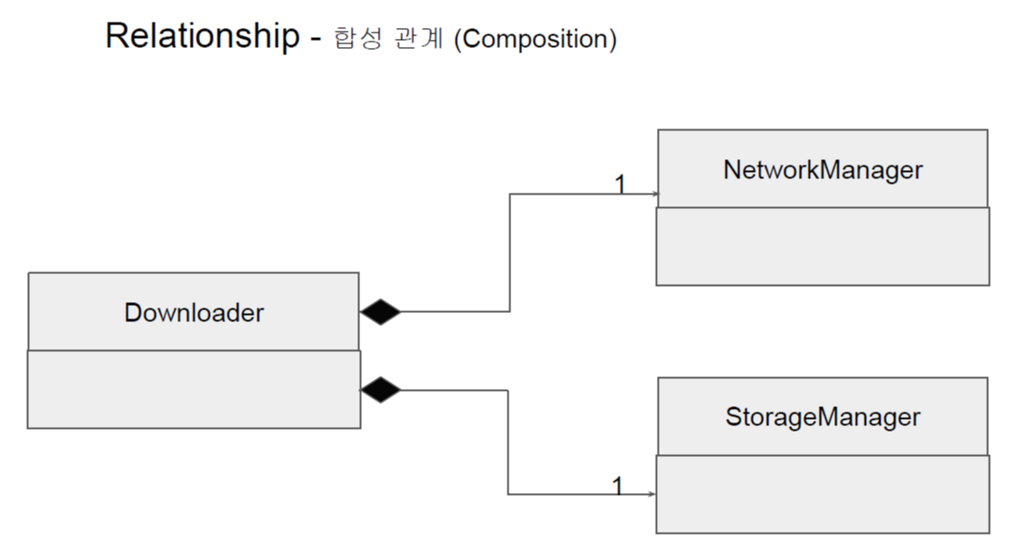 - 클래스 다이어그램에 채워진 마름모로 표시