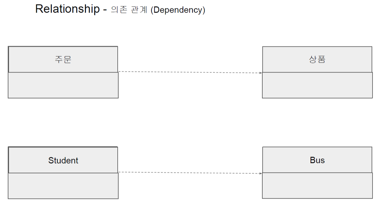 - 클래스와 클래스, 패키지와 패키지, 컴포넌트와 컴포넌트에도 사용